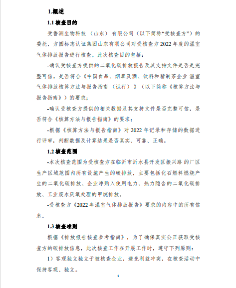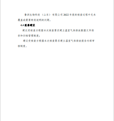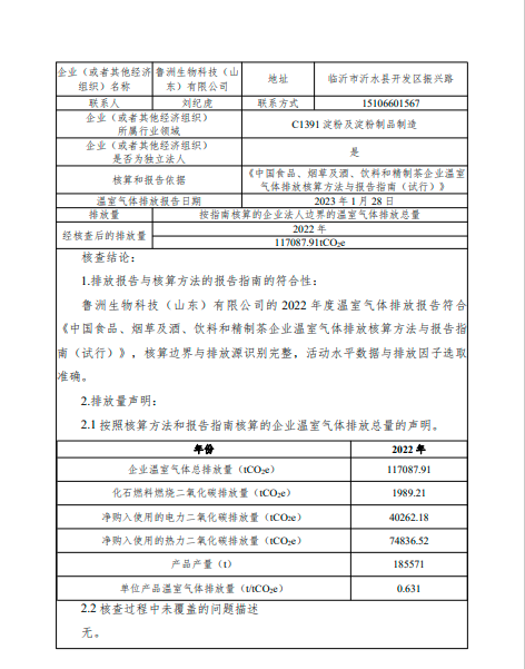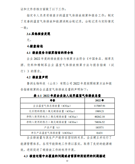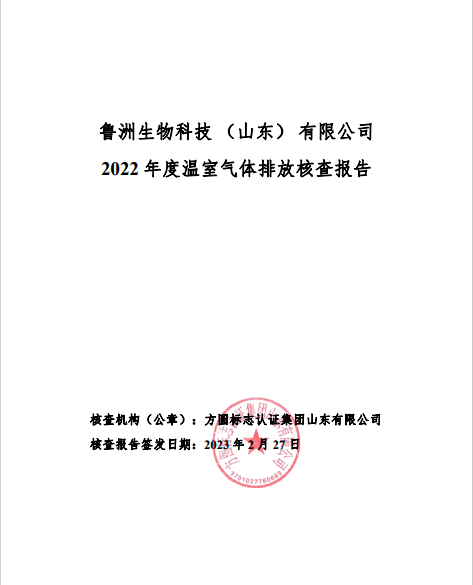 魯洲生物科技(山東)有限公司2022年度溫室氣體排放核查報(bào)告