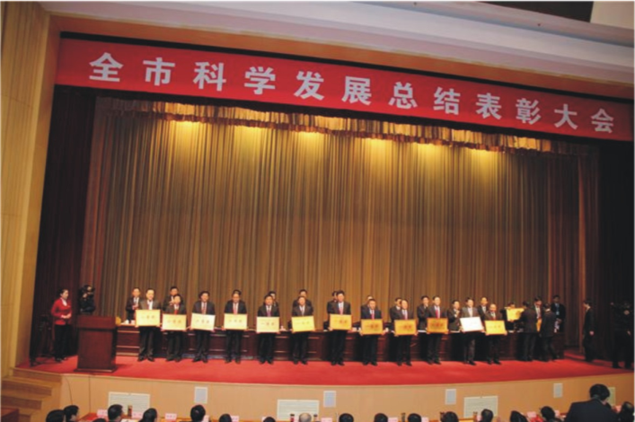 會(huì)議表彰了全市科學(xué)跨越發(fā)展中涌現(xiàn)出來(lái)的先進(jìn)縣區(qū)、鄉(xiāng)鎮(zhèn)、部門(mén)和企業(yè),魯洲集團(tuán)榮獲臨沂市委、市政府聯(lián)合頒發(fā)的“2015年度貢獻(xiàn)大美新臨沂建設(shè)功勛企業(yè)”。集團(tuán)執(zhí)行董事高中法出席會(huì)議并上臺(tái)領(lǐng)獎(jiǎng)。