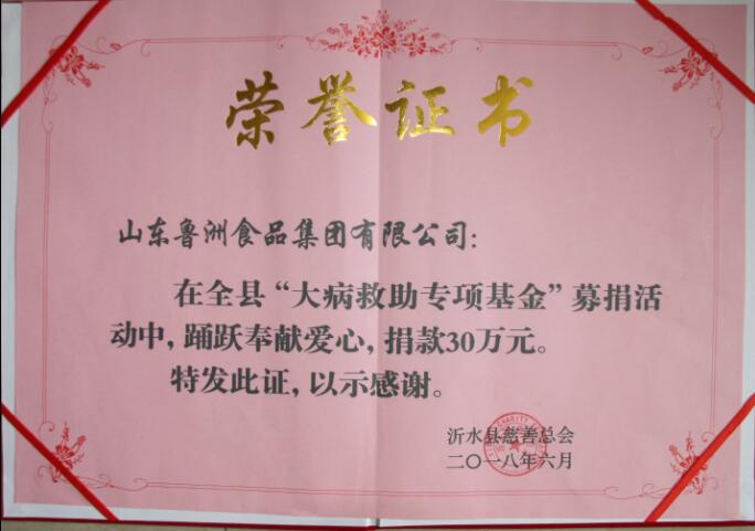 魯洲集團(tuán)參加了此次捐款活動,捐款30萬元,助力我縣精準(zhǔn)扶貧,為更多因病致貧、因病返貧及因病不能脫貧的家庭奉獻(xiàn)愛心。